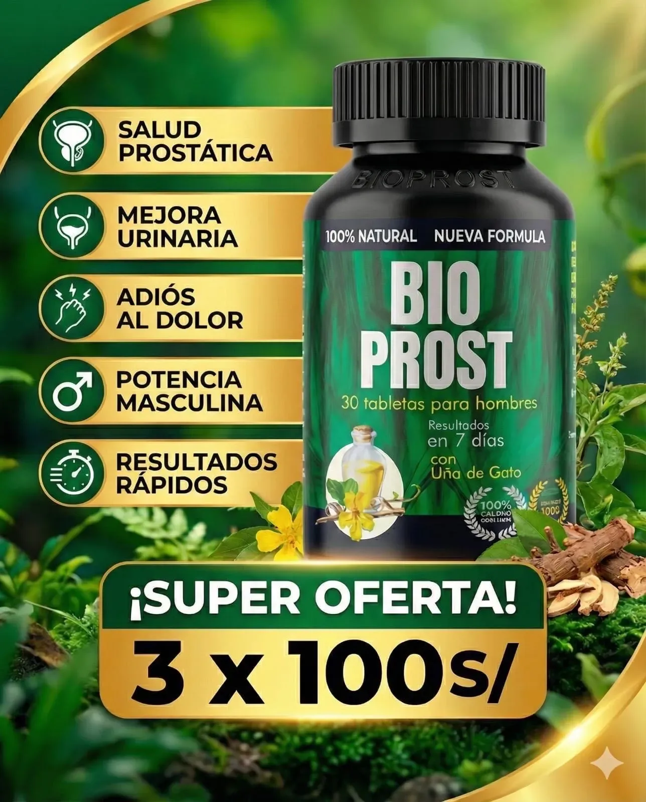 Descubre el poder de BioProst, la nueva fórmula 100% natural con *Uña de Gato* diseñada para tu salud.